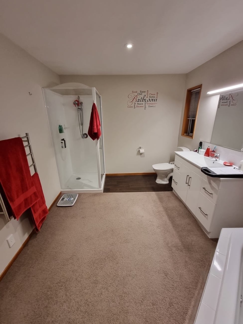 - Shower an Atlantis 1200×900 with a specialised tile over shower base.